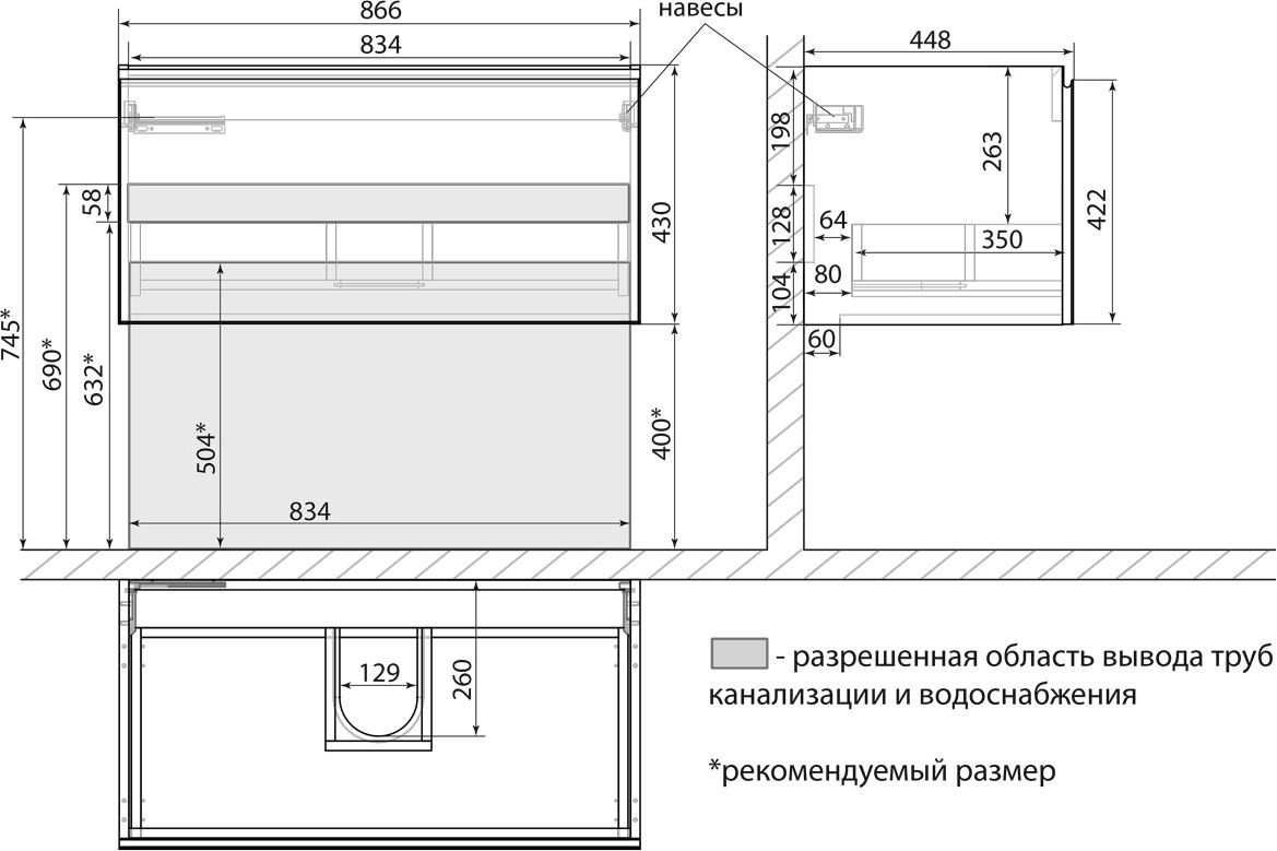 Установка:полувстраиваемая