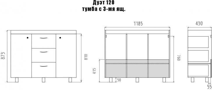 Тумба с раковиной Misty Дуэт 120 П-Ду061203я01-1