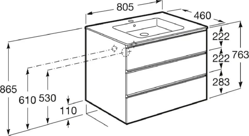 Тумба с раковиной Roca The Gap 80 A857406402 3 ящика, городской дуб