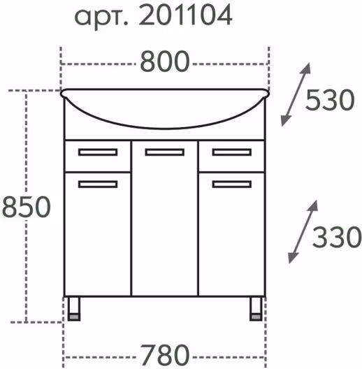 Тумба с раковиной СанТа Эльбрус 80 201115