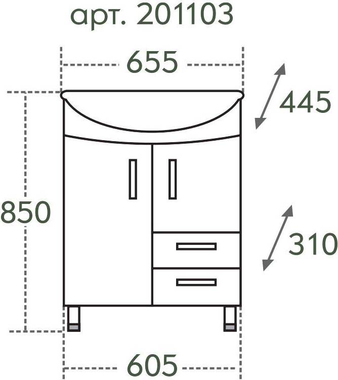 Тумба с раковиной СанТа Элеганс 65 201103 2 двери, 2 ящика