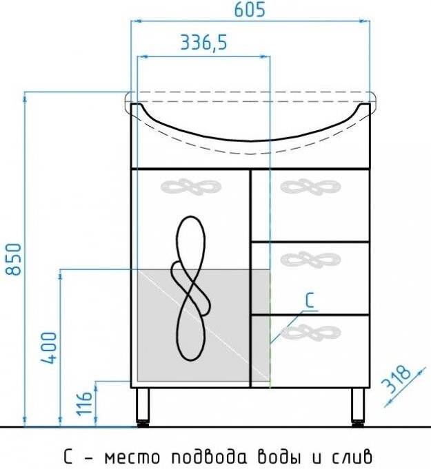 Тумба с раковиной Style Line Венеция 61 ЛС-00000254