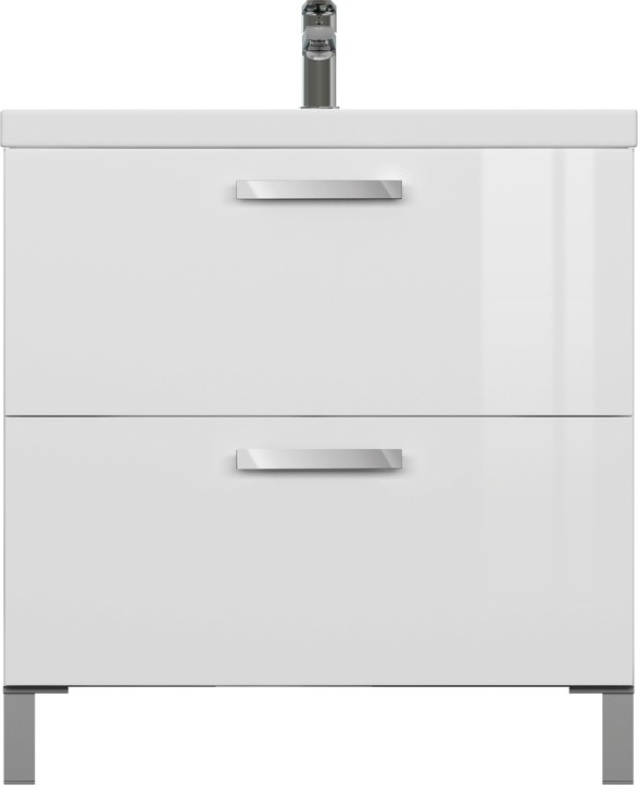 Тумба под раковину MELAR выполнена в нетеряющем актуальности белом цвете. Гладкие глянцевые фасады ящиков дополены хромированными ручками четкой геометричесокй формы. Скрытые направляющие ящиков снабжены доводчиками, что позволяет закрывать ящик мягко и бесшумно. Тумбу можно как подвешивать на стенку, так и устанавливать на ножки, что делает ее универсальным и функциональным решением для любой ванной комнаты.