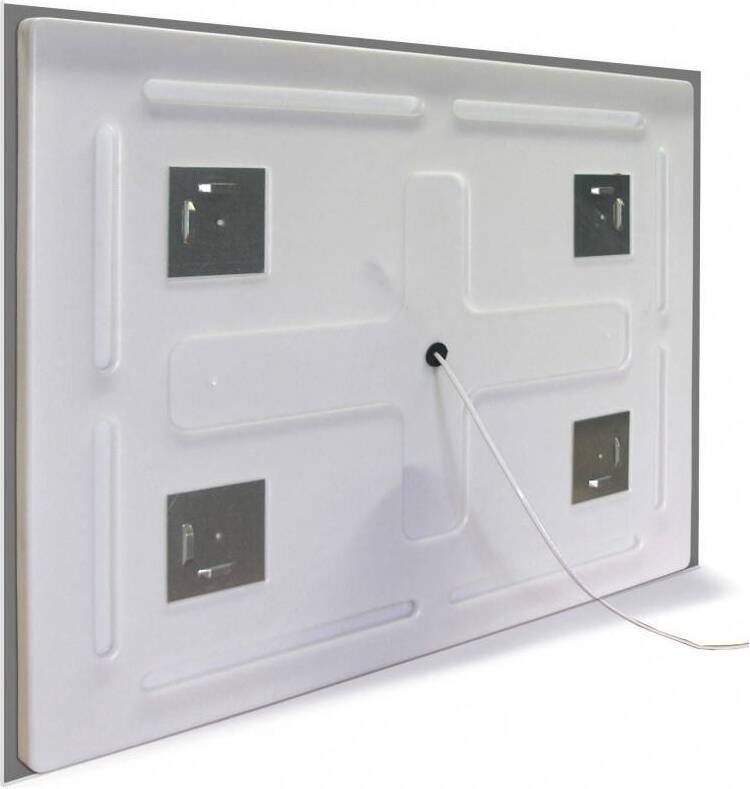 Толщина изделия — 30 мм, Зеркало 4 мм прямоугольное, кромка - полированная. Корпус изделия выполнен из светорассеивающего пластика, и укомплектован светодиодной лентой SMD 3528, 600 Led, 12V. Крепеж для навески прилагается.
