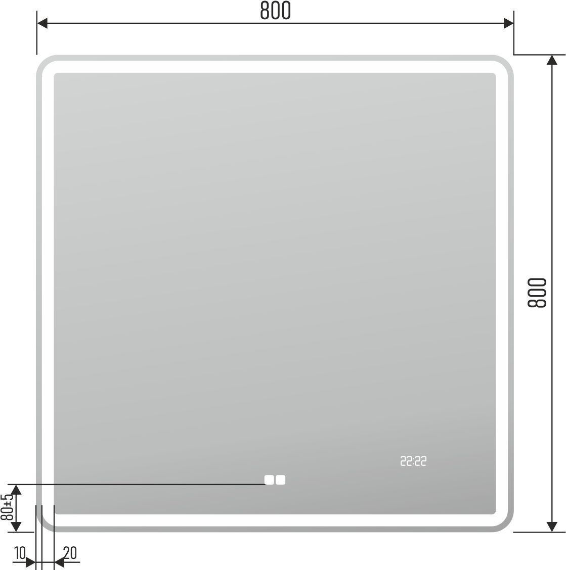 Зеркало STL Design Rio Round 80х80 с подсветкой, с кнопкой, с подогревом, с часами УТ-00029278