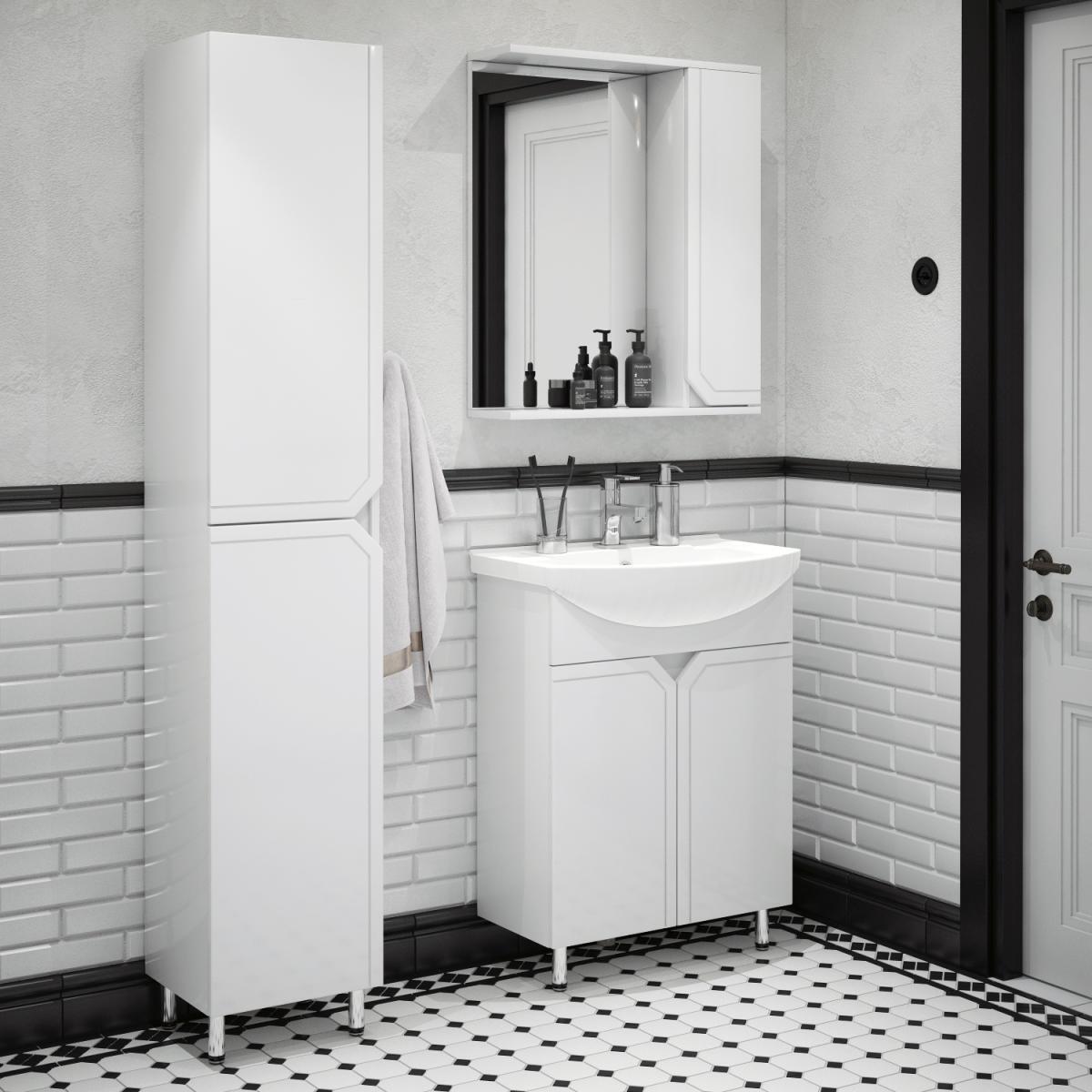 | У шкафа-пенала «Сириус» 2 распашные дверки, позади дверок – полки. Фасады без ручек – вместо них эргономичная форма сбоку для удобства открывания. Фасад выполнен из влагостойкой плиты МДФ. В комплект входят хромированные опоры. |
