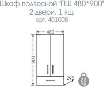 Шкаф навесной СаНта Стандарт 401008 48х90 2 двери, 1 ящик