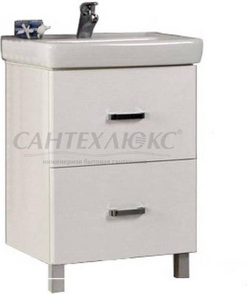 Стильная лаконичная модель, комплектуется прямоугольной керамической раковиной с широкой удобной чашей. В тумбе установлены два ящика, изготовленные из декоративной влагостойкой ДСП.