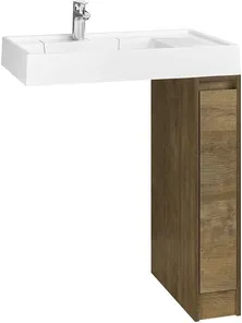 Тумба Лондри под стиральную машину выполнена из влагостойкой ламинированной плиты в древесной отделке. Корпус тумбы и фасад приобретаются отдельно. Тумбы комплектуются фасадами как с такой же древесной текстурой, так и в универсальном белом глянцевом цвете – это позволяет выбрать модель тумбы в соответствии с личными предпочтениями, создав наиболее удачное решение для конкретного интерьера ванной комнаты. Более того, при желании в одной тумбе можно совместить корпус и фасады в двух разных по оттенку древесных декорах. За фасадом тумбы скрывается удобная бутылочница. Открытие тумбы Лондри осуществляется за фасад благодаря эргономичному выпилу под углом. Ящик состоит из двух отделений: верхнего и нижнего. Каждое отделение ящика выдерживает нагрузку до 20 кг. Тумба комплектуется раковиной Рейн 80 из прочного литого мрамора. Раковина приобретается отдельно. Компактный размер данного комплекта подойдет для небольших ванных комнат и обеспечит место для хранения необходимых предметов и аксессуаров. Дополнительно к тумбе можно приобрести шкаф-колонну Лондри и зеркальный шкаф Лондри 80.