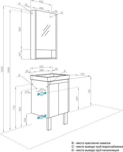 Мебель для ванной Aquaton Сканди Doors 45 1A278701SDB20 белый глянец, дуб верона