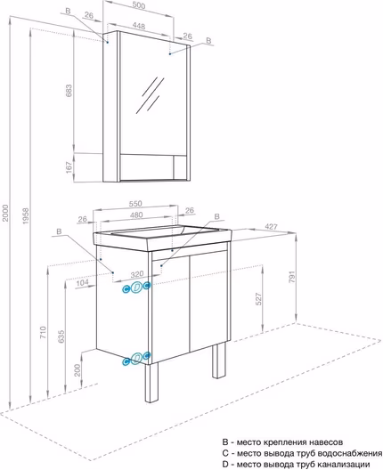 Мебель для ванной Aquaton Сканди Doors 55 1A278801SDZ90 белый глянец, дуб рустикальный K-716643