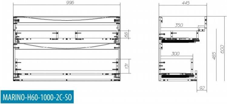 Мебель для ванной BelBagno Bianco Lucido 100 MARINO-H60-1000-2C-SO-BL-P подвесная с 2 выкатными ящиками