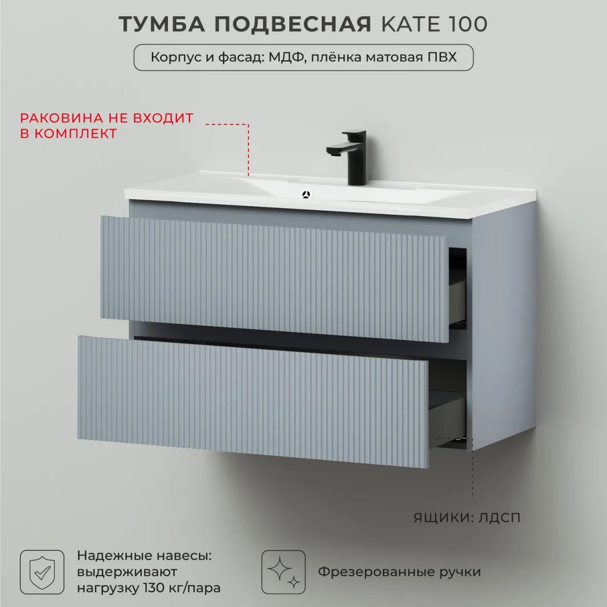 Коллекция Kate - воплотила в себе тренд на фактурные фасады. Идеальный "рубчик" - простое и стильное дизайнерское решение для декорирования фасадов - эта мебель бесспорно станет украшением современной ванной комнаты. Коллекция выполнена из МДФ и покрыта ПВХ пленкой, что делает её устойчивой к влаге, а значит долговечной. Удобные фрезерованные ручки, качественная фурнитура с доводчиками, вместительность - мы продумали все, чтобы мебель была не просто красивой, но еще и функциональной, приятной в использовании.