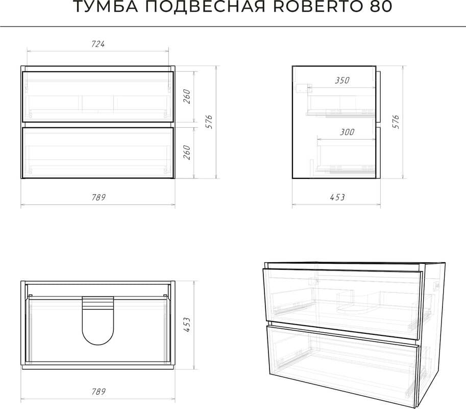 Стильная подвесная тумба серии ROBERTO от бренда ITANA сочетает в себе современный дизайн и функциональность. Эта модель идеально подходит для организации пространства в ванных комнатах и санузлах.
