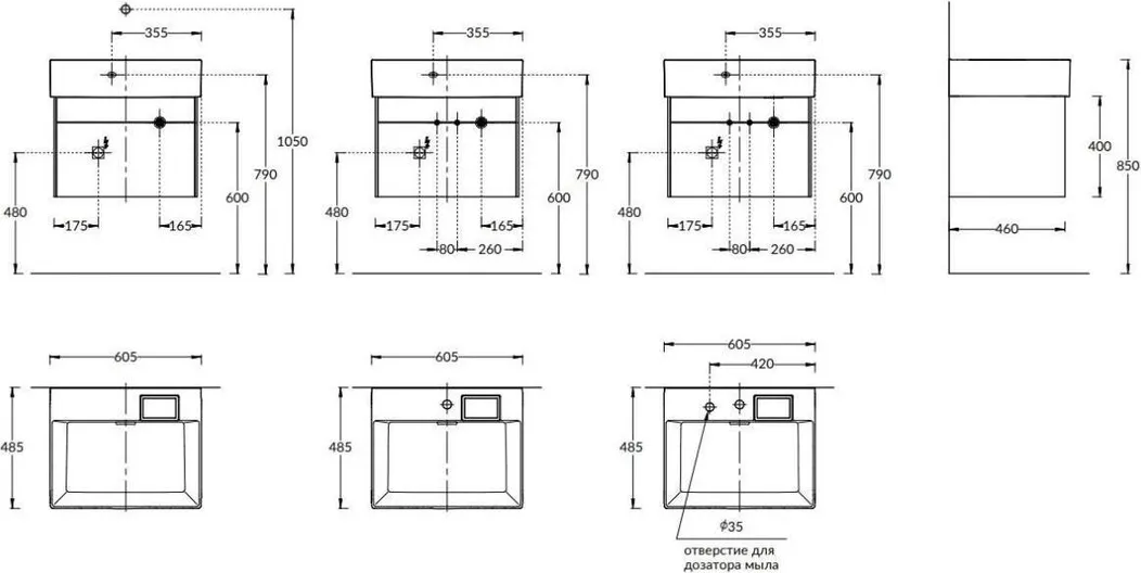 Фасады и корпус выполнены из МДФ в цвете «Песчаный»: верхний фасад — глянцевый тёмный, нижний фасад и корпус — матовый светлый. Тумба имеет два выдвижных ящика с открытием Push to open, с внутренней отделкой «Лён Антрацит». Верхний ящик, благодаря нестандартному расположению сифона, содержит больше полезного пространства и удивляет стеклянной вставкой в основании: через такое «окно» снизу струится свет, эффектно подчёркивая содержимое.