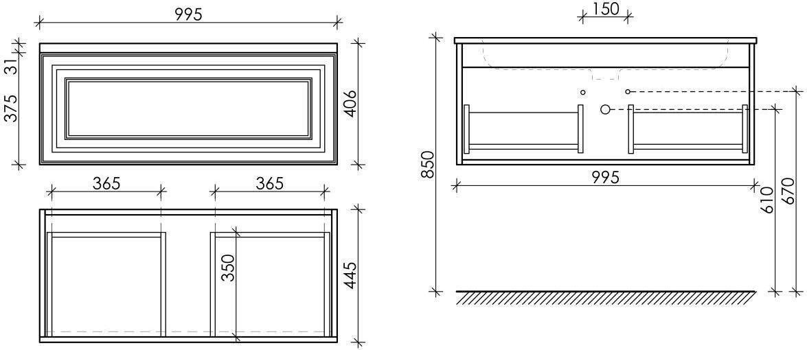 | Тумба подвесная SANCOS Very 995х445х406, c одним ящиком оснащенным доводчиками скрытого монтажа с системой Soft close (плавного закрывания), Bianco , арт.VR100W |