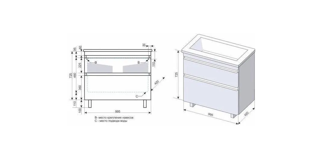 Мебель для ванной Style Line Атлантика 100 СС-00000692 антистрейч