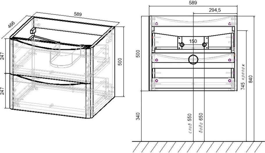 Тумба с раковиной Vincea Paola VMC-2P600VO 60 K-418306