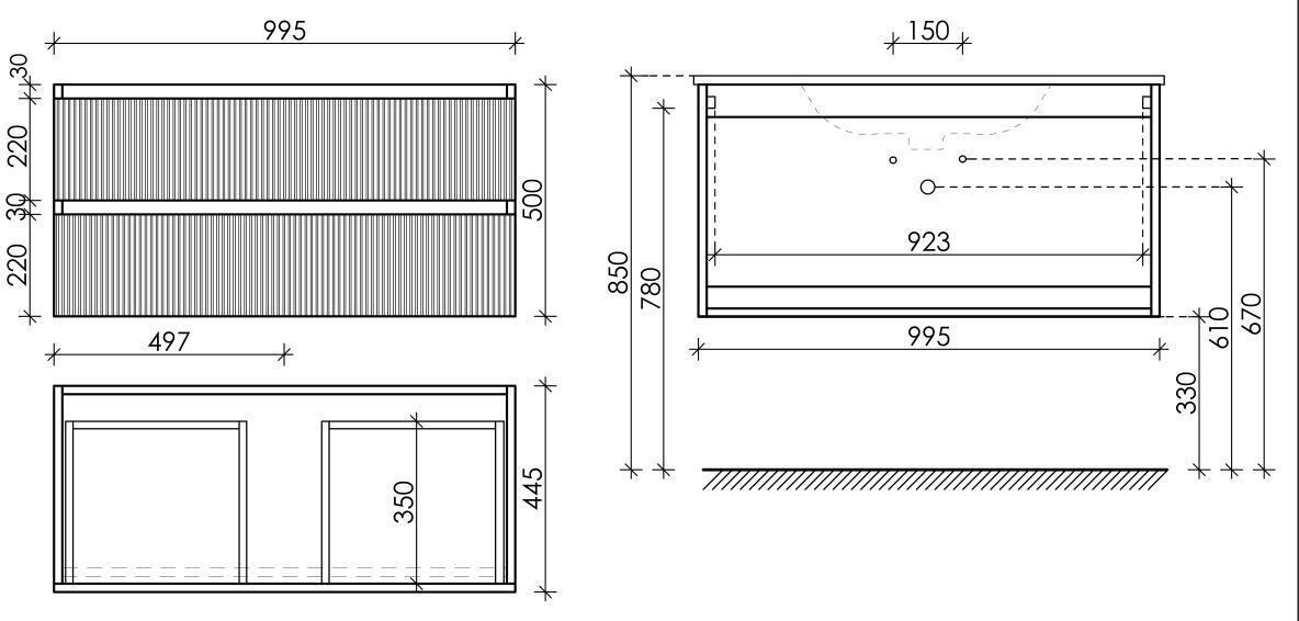 | Тумба подвесная SANCOS Snob T 995х445х500, c двумя ящиками оснащенными доводчиками скрытого монтажа с системой Soft close (плавного закрывания), Doha Soft, арт.SNT100SM |
