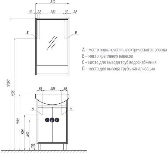 Мебель для ванной Акватон Рико 50 1A212401RIB90 бел/ясень фабрик