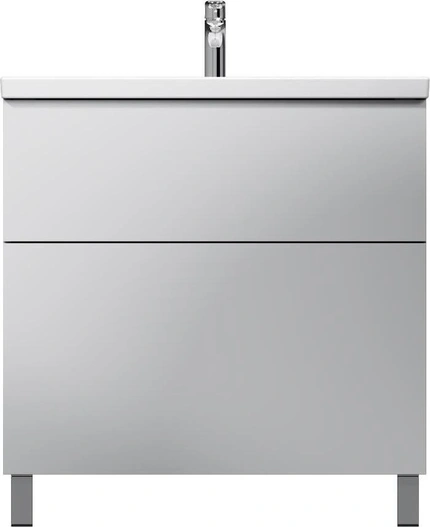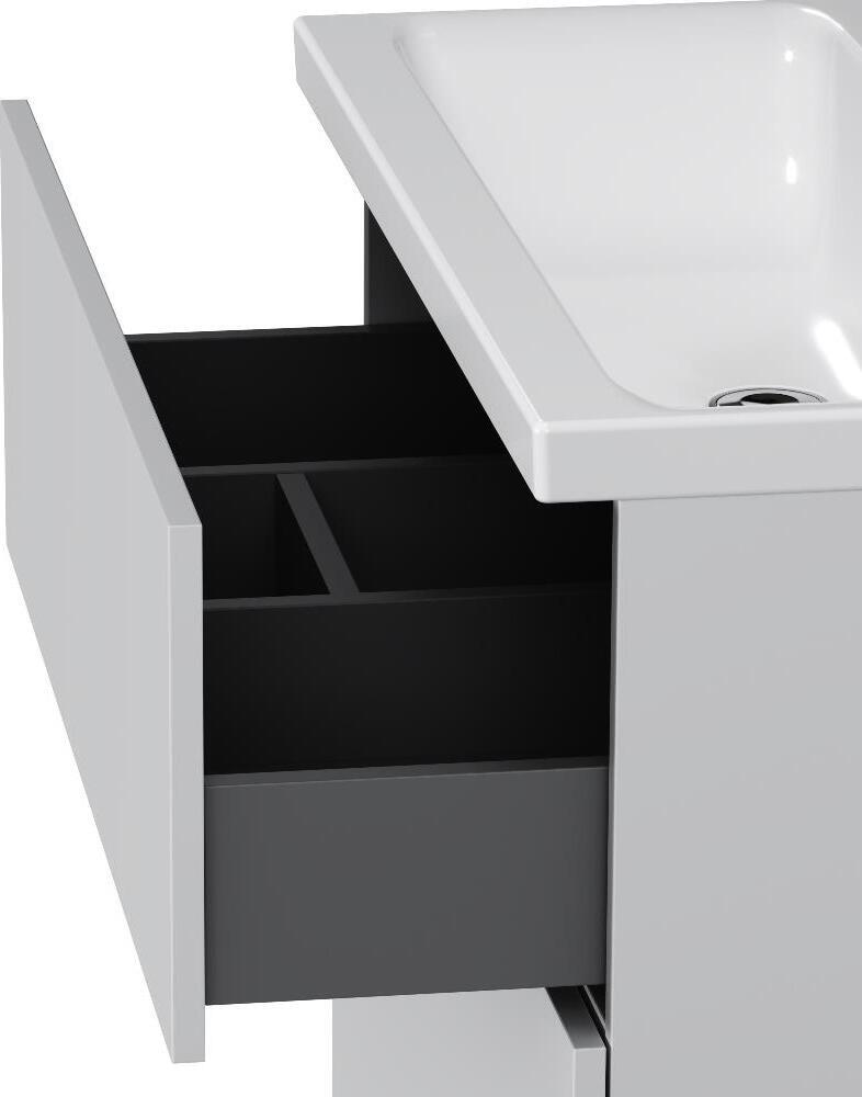 Напольная тумба бренда AM.PM коллекции Gem изготовлена из влагостойкого ЛДСП. Внутреннее пространство двух вместительных ящиков представлено в цвете "антрацит" с антискользящим эффектом. В верхнем ящике находится удобный органайзер для хранения гигиенических принадлежностей. Благодаря системе отделений органайзера каждый предмет имеет свое место что обеспечивает порядок и удобство при использовании. Такая система хранения позволяет экономить место и помогает поддерживать чистоту ванной комнаты. Фурнитура push-to-open - открытие ящика легким нажатием на фасад. Направляющие скрытого монтажа обеспечивают плавное выдвижение ящиков. Материал тумбы - влагостойкая ЛДСП.
