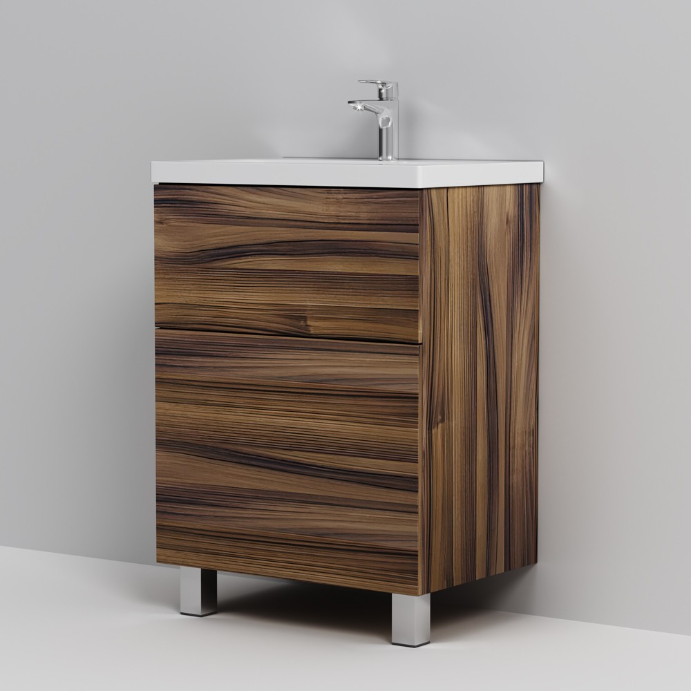 Представляем расширение цветовой палитры коллекции Gem в цвете “орех”. Напольная база под раковину изготовлена из влагостойкого ЛДСП. Внутреннее пространство двух вместительных ящиков представлено в цвете антрацит с антискользящим эффектом.