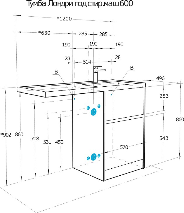 - Монтаж:на тумбу для раковины