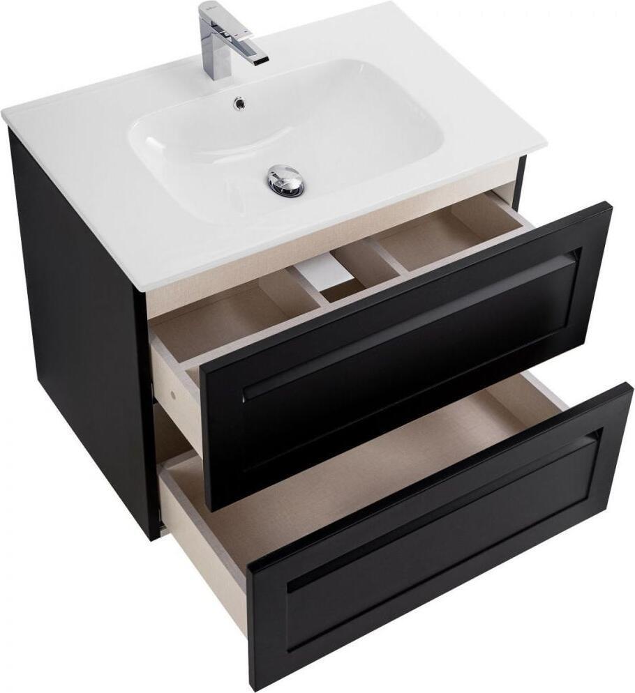 Тумба с раковиной Art&Max AM-Platino-800-2C-SO-NM-Cer 80 см, Черная матовая