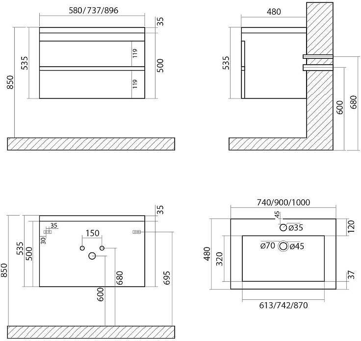 Мебель для ванной Art&Max Family-750-2C-SO-PB 75 бежевая K-4920221