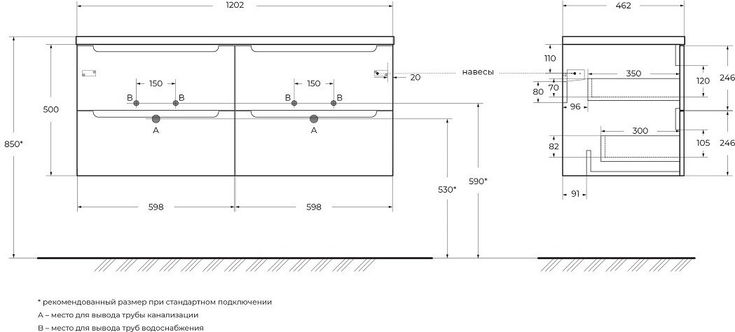 Тумба с раковиной BelBagno Etna-1200-4C-SO-2-BL 120 см, Bianco Lucido