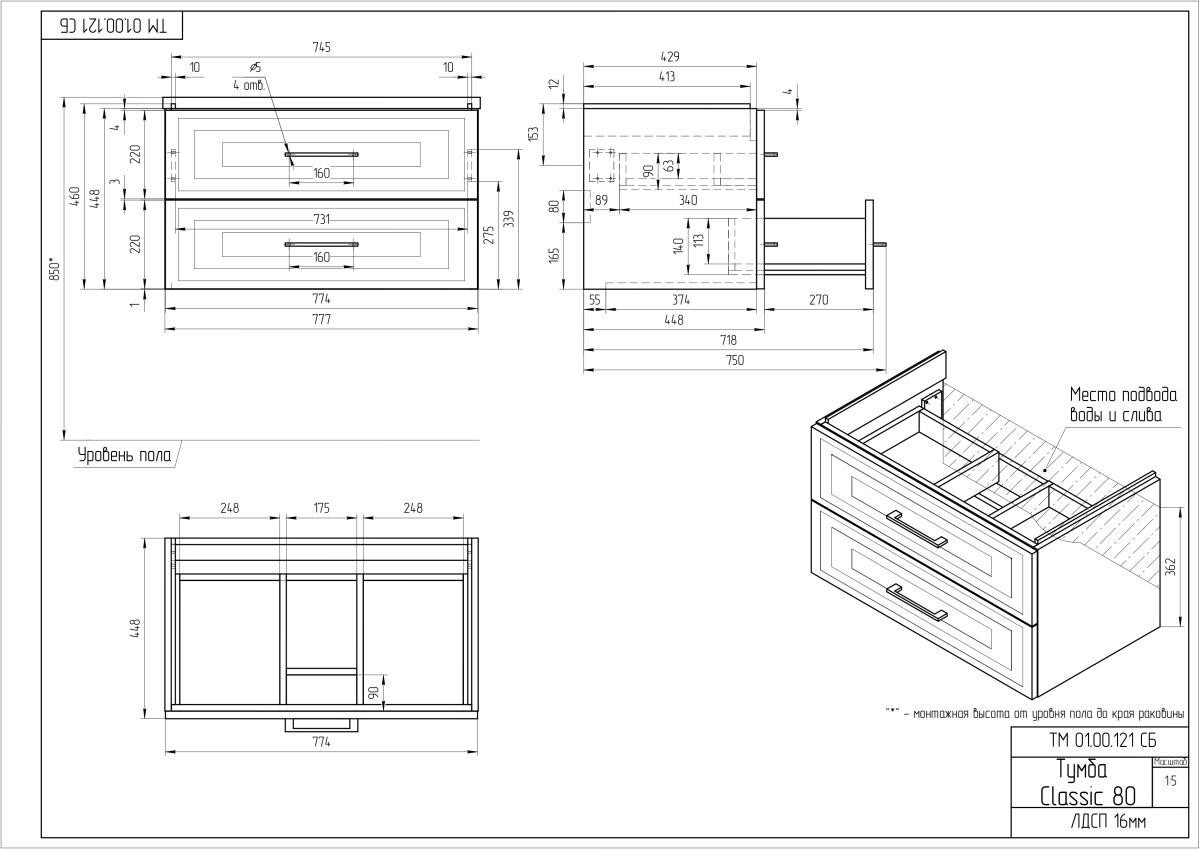 - Монтаж:на тумбу для раковины