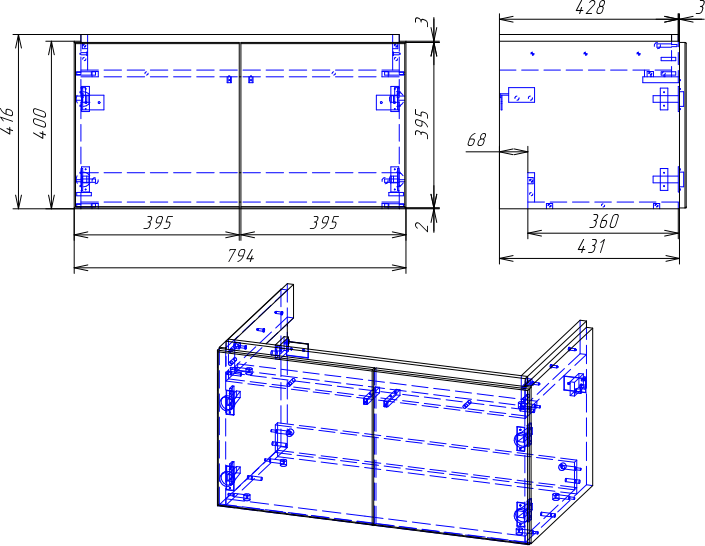 - Монтаж: подвесной