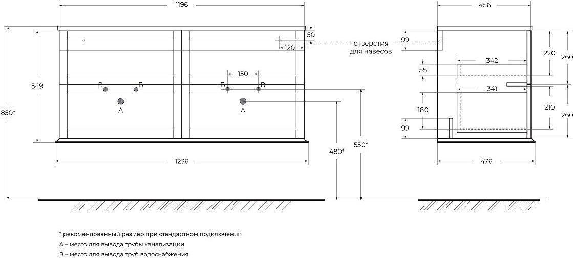 - Монтаж:на тумбу для раковины