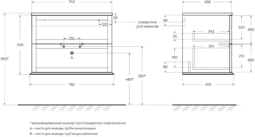 - Монтаж:на тумбу для раковины