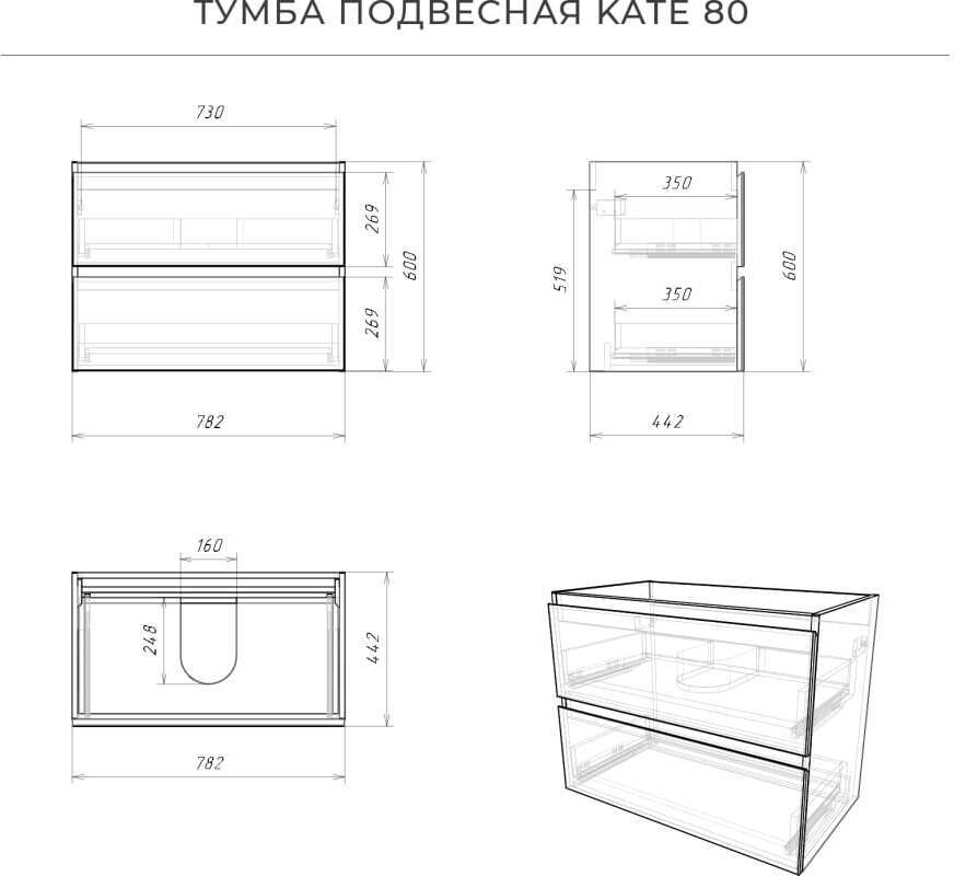 Тумба с раковиной Itana Kate 80 бланж K-822150