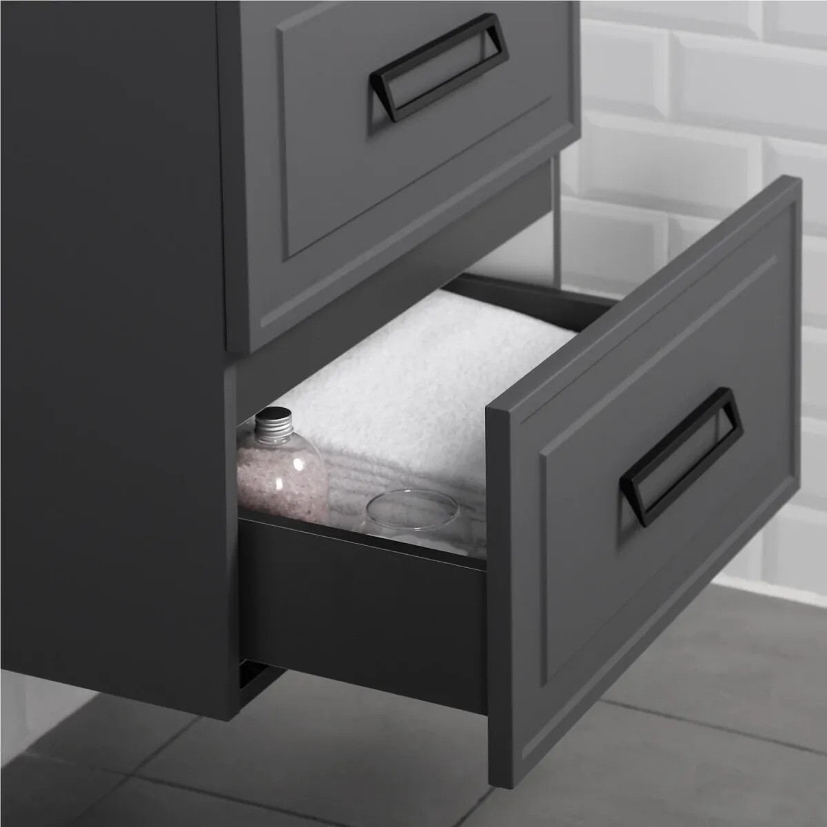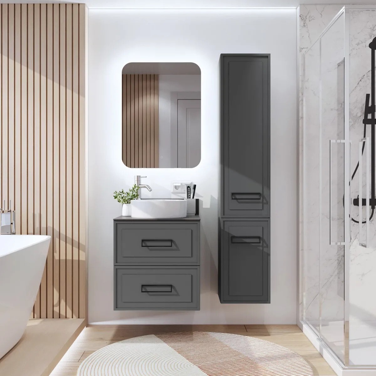 Модная и актуальная, строгая и элегантная коллекция в стиле нео-классика украсит современную ванную комнату. Строгую фрезеровку фасадов подчеркивает современная, дерзкая ручка. Подвесная тумба со столешницей украсит ванную комнату в современном стиле. Тумба для ванной выполнена из влагозащитного МДФ в пленке ПВХ и будет радовать Вас долгие годы. Качественная фурнитура с доводчиками обеспечивает легкое открывание и закрывание ящиков. Благодаря подвесному типу мебели легко поддерживать чистоту в ванной комнате. Вырез под сифон универсальный, для любого типа. Благодаря своей конструкции тумба обеспечивает удобный доступ к раковине и позволяет скрыть коммуникации. Тумба со столешницей в ванную оснащена удобными ящиками для хранения, что позволяет разместить всё необходимое под рукой. Для точного выбора тумбочки со столешницей в ванную комнату рекомендуем обратиться к схеме замеров, которая находится на фото в карточке товара, размеры изделия могут отличаться +/-1 см в связи со спецификой производства. Укомплектуйте тумбу со столешницей из керамогранита настольной раковиной, пеналом и зеркалом.