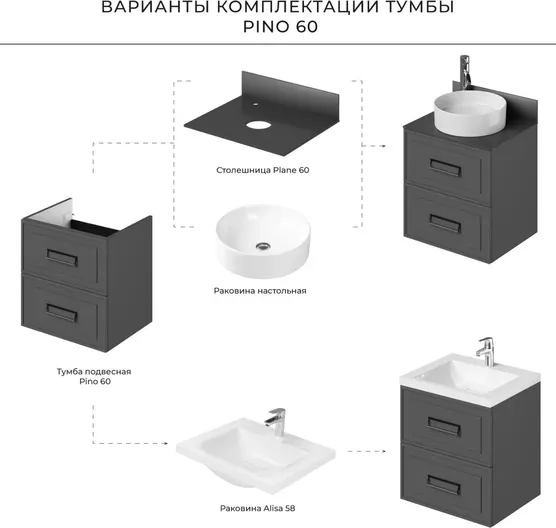 Тумба с раковиной Itana Pino 60 графит K-476255