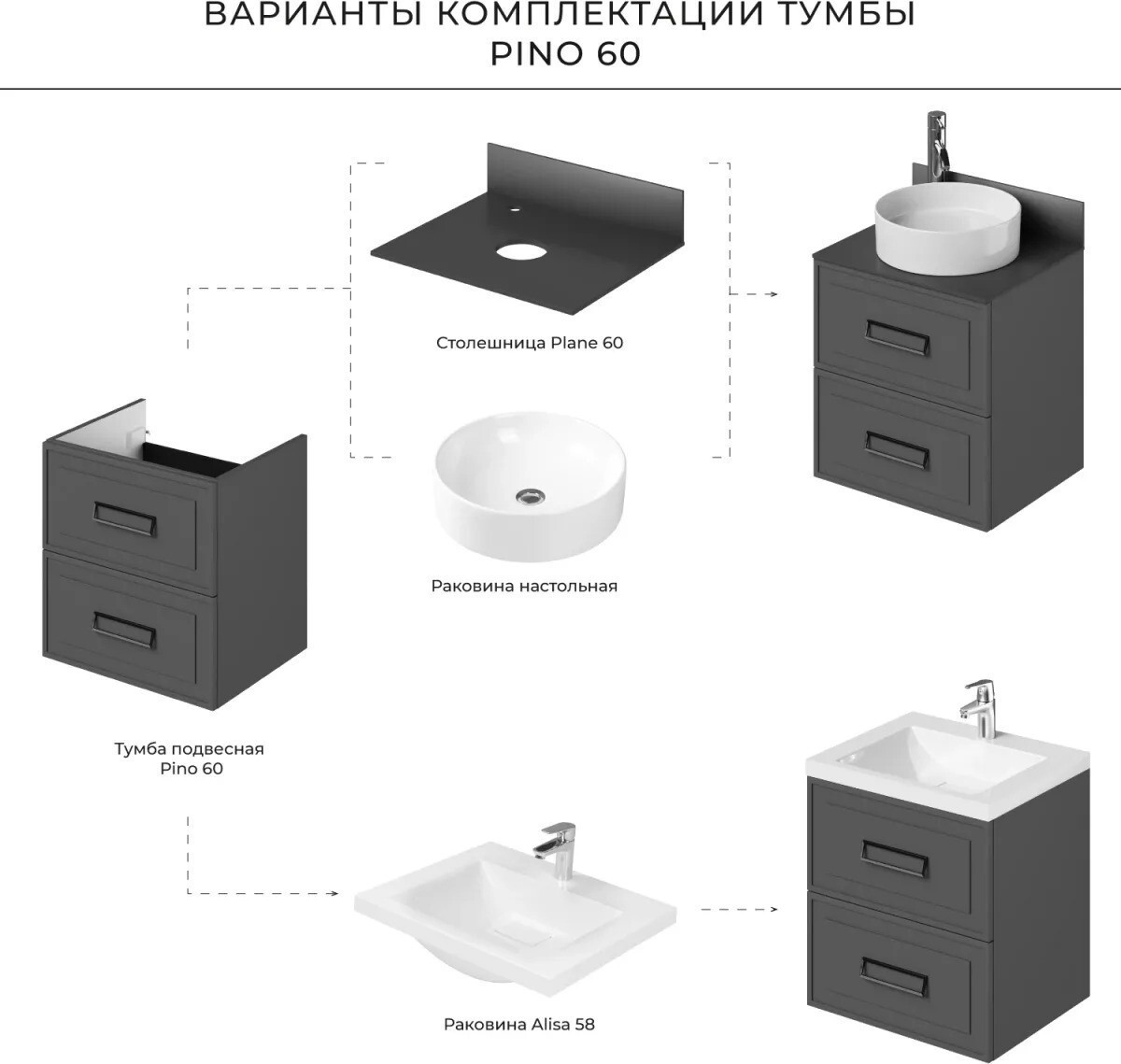 Тумба с раковиной Itana Pino 60 графит K-9294391