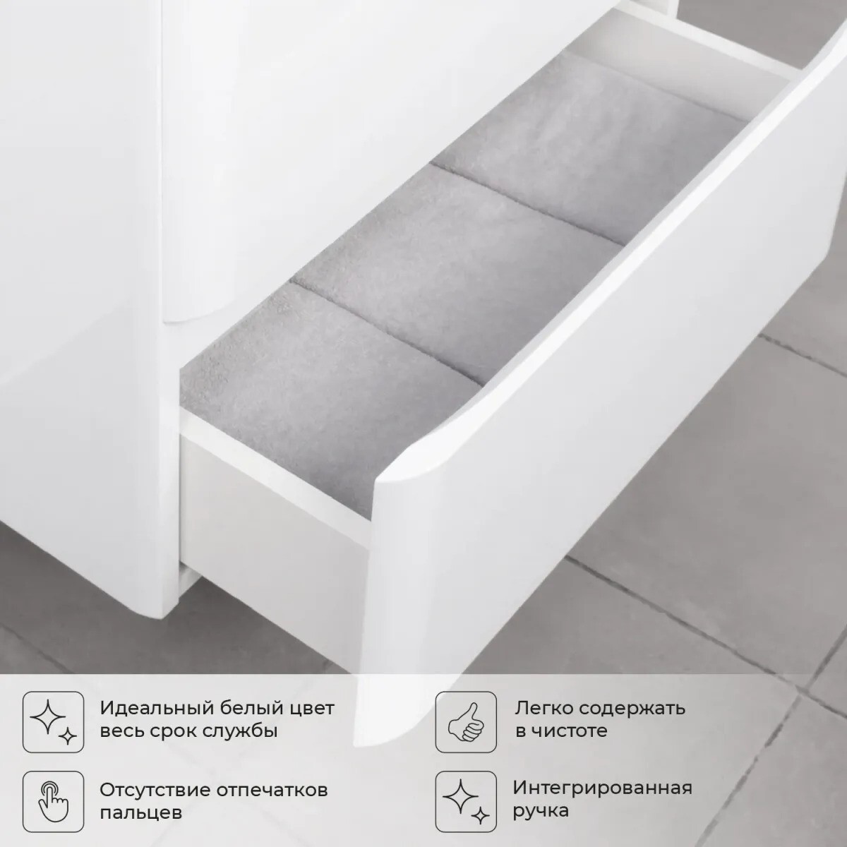 Подвесная тумба со столешницей из коллекции Roberto станет настоящим украшением вашей ванной комнаты. Тумба для ванны изготовлена из прочного МДФ, поэтому выдерживает высокие эксплуатационные нагрузки. Корпус и фасады тумбы для ванной покрыты глянцевой эмалью, что обеспечивает дополнительную защиту тумбы со столешницей от влаги и перепадов температуры. Качественная фурнитура с доводчиками обеспечивает легкое открывание и плавное закрывание ящиков и дверок. Вырез под сифон универсальный, для любого типа. Благодаря своей конструкции тумба позволяет скрыть коммуникации. Тумба со столешницей в ванную оснащена удобными ящиками для хранения, что позволяет разместить всё необходимое под рукой. Дополнить комплект можно пеналом и зеркалом. Для точного выбора тумбочки со столешницей в ванную комнату рекомендуем обратиться к схеме замеров, которая находится на фото в карточке товара, размеры изделия могут отличаться +/-1 см в связи со спецификой производства. Тумба для ванной доставляется в предварительно собранном виде, надежно упакована.