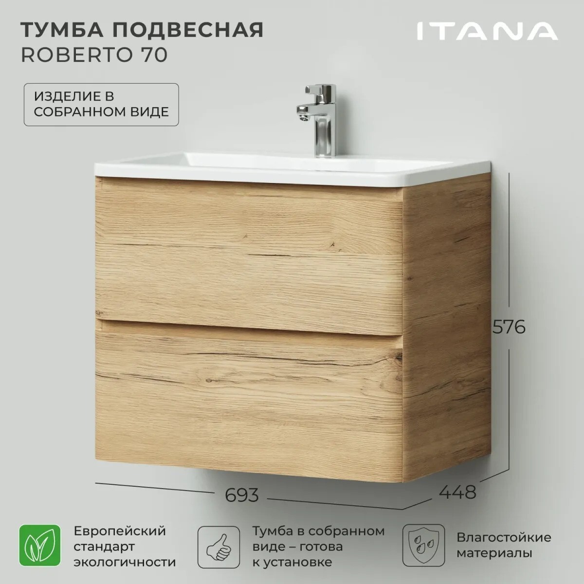 Тумба с раковиной Itana Roberto 70 см, Дуб Мавелла Голд