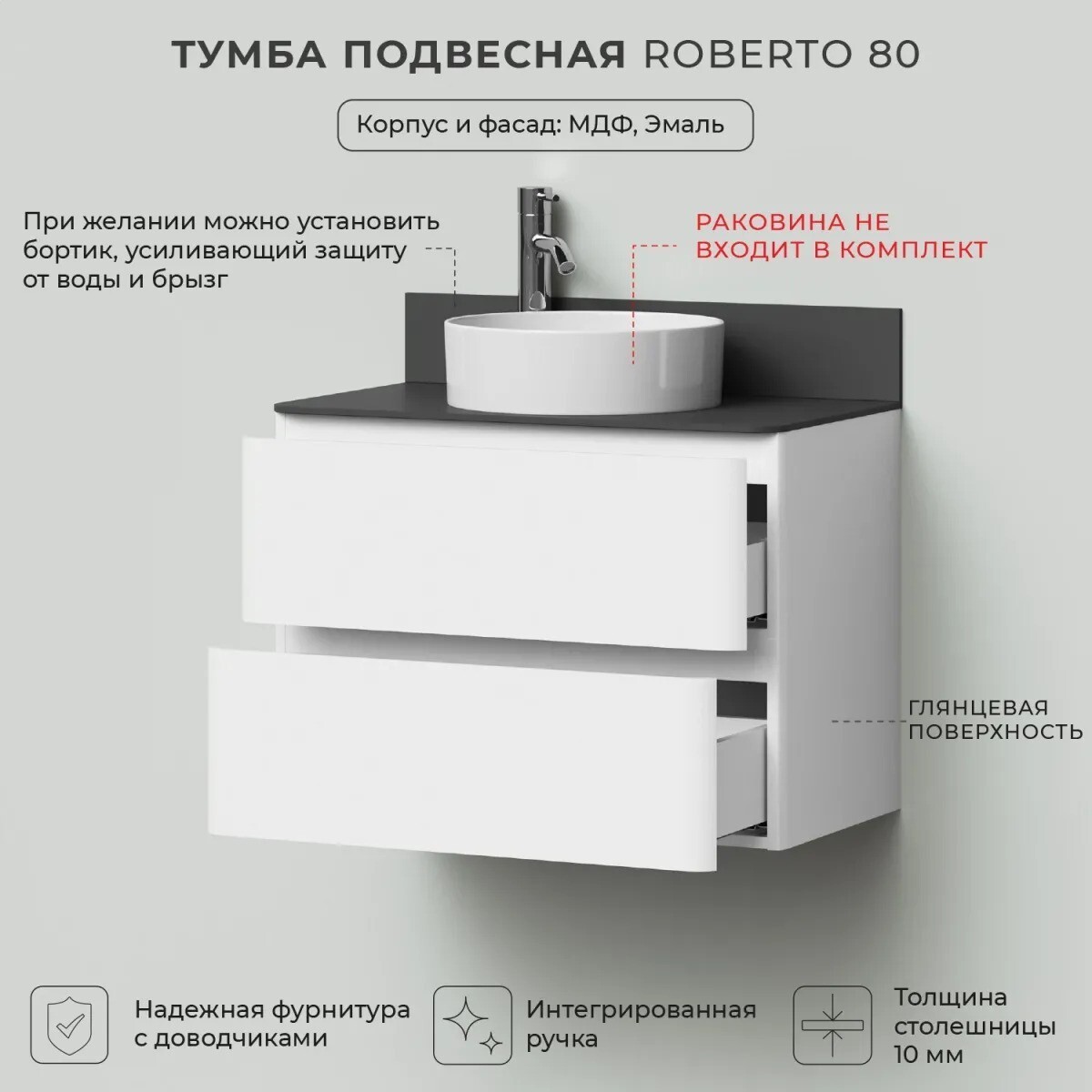 Тумба с раковиной Itana Roberto 80 белый глянец