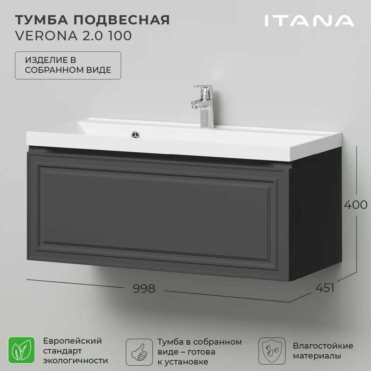 Тумба с раковиной Itana Verona 2.0 100 графит