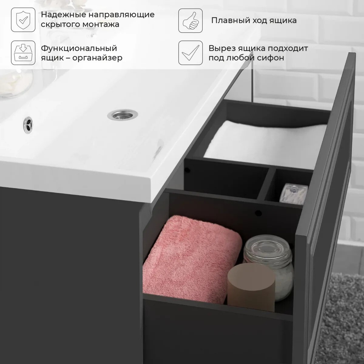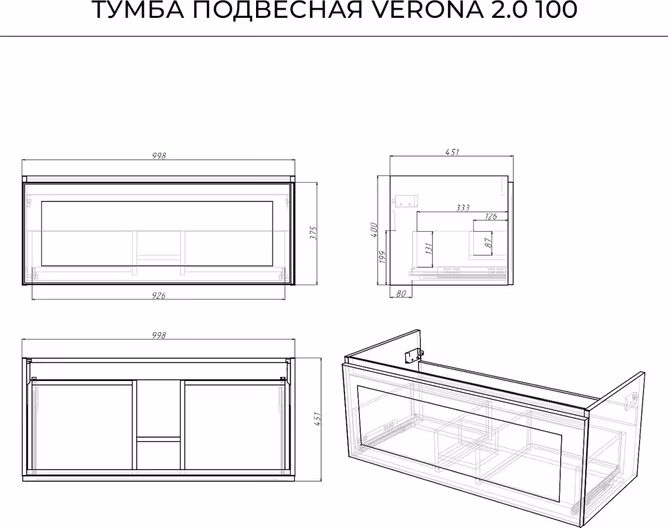 Тумба под раковину Итана Verona 2.0 100 998х451х400 Графит станет идеальным дополнением для вашей ванной комнаты, сочетая в себе стильный дизайн и практичность. Эта тумба, выполненная в элегантной графитовой цветовой гамме, прекрасно впишется в любой интерьер. Тумба под раковину Verona 2.0 от бренда Итана отличается высоким качеством материалов и фурнитуры, что гарантирует длительный срок службы. Ее размеры 998х451х400 мм позволяют оптимально использовать пространство ванной комнаты, обеспечивая достаточно места для хранения всех необходимых вещей. Тумба под раковину изготовлена из влагостойких материалов, что особенно важно для эксплуатации в условиях повышенной влажности. Подвесная тумба для ванной Verona 2.0 функциональна и удобна в использовании. Она оснащена просторными ящиками для хранения, где вы сможете разместить косметику, полотенца и другие необходимые аксессуары. Лаконичные линии и современный дизайн изделия подчеркнут стиль вашей ванной комнаты. Установка подвесной тумбы облегчит уборку пола и создаст ощущение легкости и простора в помещении. Основные характеристики тумбы под раковину Итана Verona 2.0 100: - Элегантный графитовый цвет; - Изготовлена из влагостойких материалов; - Размеры 998х451х400 мм.; - Просторные ящики и отсек для хранения. Эта тумба для ванной объединяет стиль и функциональность, что делает ее отличным выбором для любого современного интерьера. Выбирая тумбу под раковину Итана Verona 2.0, вы получаете надежное и эстетичное решение, которое украсит вашу ванную комнату и обеспечит удобство в повседневном использовании.