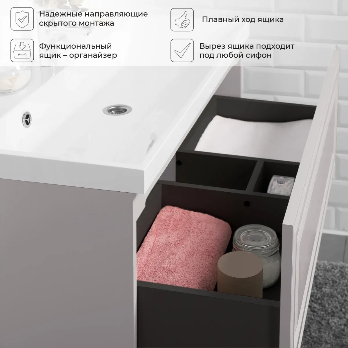 Тумба под раковину Итана Verona 2.0 100 998х451х400 Керамик — идеальное решение для вашей ванной комнаты. Эта изящная и функциональная тумба под раковину сочетает в себе современный дизайн и высокое качество материалов. Тумба под раковину создана для того, чтобы привнести стиль и удобство в любую ванную. Подвесная тумба для ванной Итана Verona 2.0 изготовлена из прочных и устойчивых к влаге материалов, что обеспечивает долгий срок службы. Благодаря своим компактным размерам 998х451х400 мм, тумба идеально подходит для установки в ванных комнатах различной площади, не занимая лишнего места, но при этом предоставляя достаточно места для хранения различных вещей. Тумбочка позволяет эргономично использовать пространство и держать в порядке все необходимые ванные принадлежности. Тумба под раковину Verona 2.0 легко монтируется и требует минимальных усилий при установке. Она оснащена вместительным отделением, где вы сможете разместить полотенца, косметику и прочие предметы первой необходимости. Тумба Итана Verona 2.0 сочетается с различными стилями интерьера благодаря своему универсальному дизайну. Она будет гармонично смотреться как в современных, так и в классических интерьерах ванной комнаты. Если вы ищете высококачественную, стильную и функциональную тумбу для ванной, обратите внимание на подвесную тумбу для ванной Итана Verona 2.0. Этот предмет мебели удовлетворит все ваши потребности, обеспечив комфорт и гармонию в пространстве. Приобретайте тумбу под раковину Итана Verona 2.0.