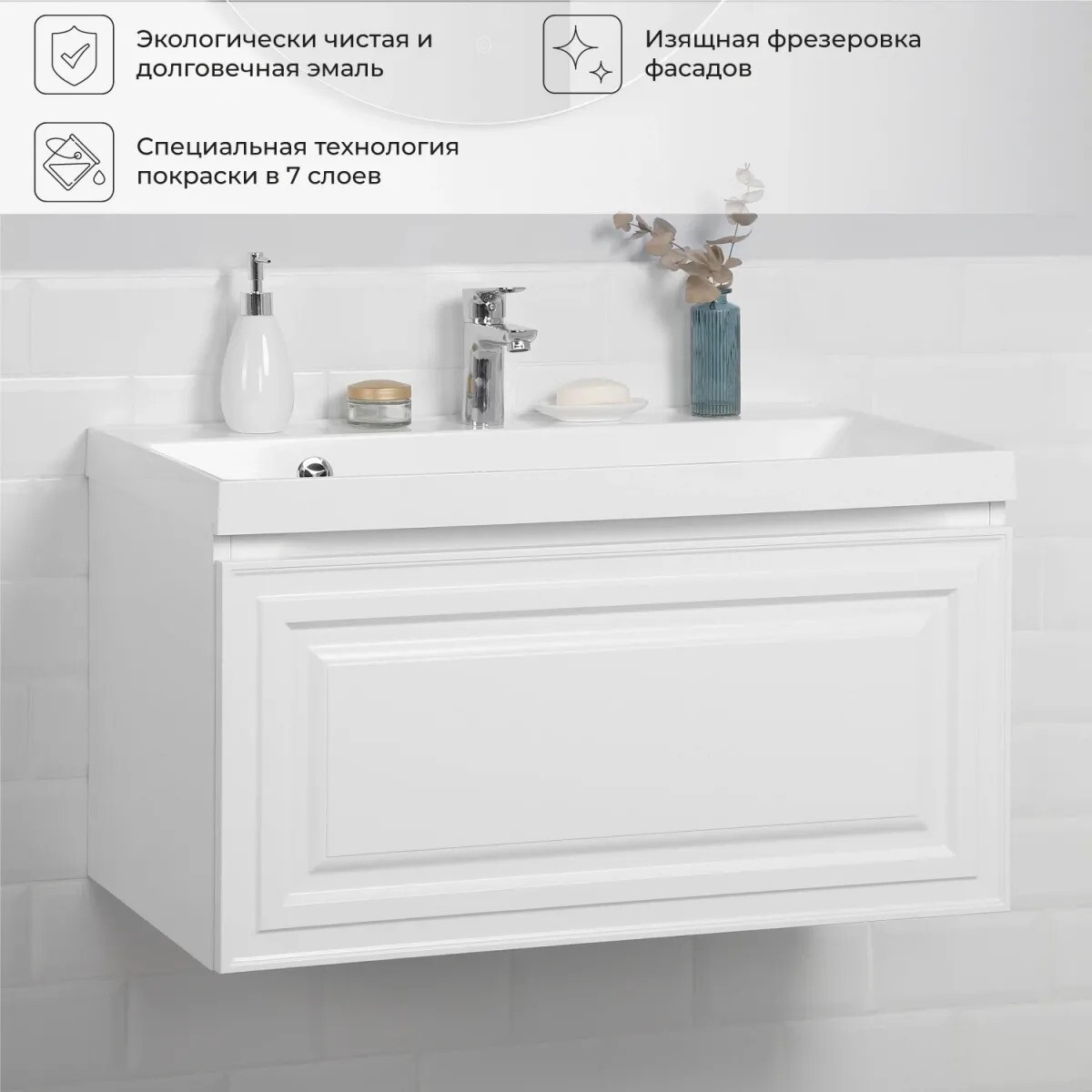 Тумба с раковиной Itana Verona 2.0 80 эмаль белая матовая