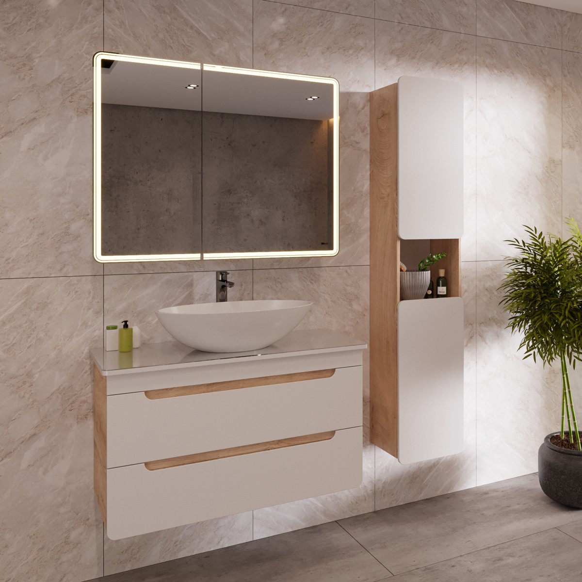 Тумба с раковиной Lemark Olivia LM08OL100T 100 дуб кантри-белый глянец