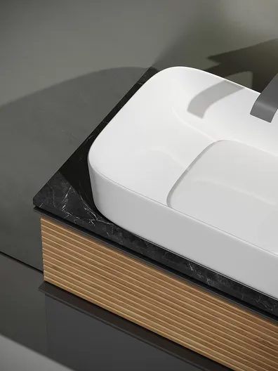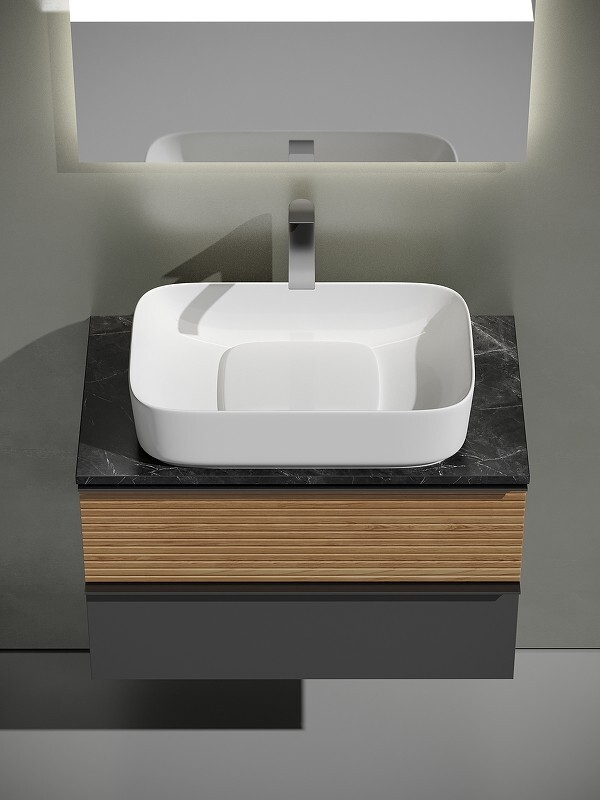 Тумба с раковиной Sancos Delta 80 см DL80GR Дуб красный Графит, столешница графит с отверстием под смеситель K-526724