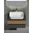 Тумба подвесная Delta c двумя ящиками оснащенными доводчиками скрытого монтажа с системой плавного закрывания и черными профильными накладными ручками. Каркас и фасад тумбы выполнен из мдф, покрытие пвх - пленка в цвете «дуб красный/графит».