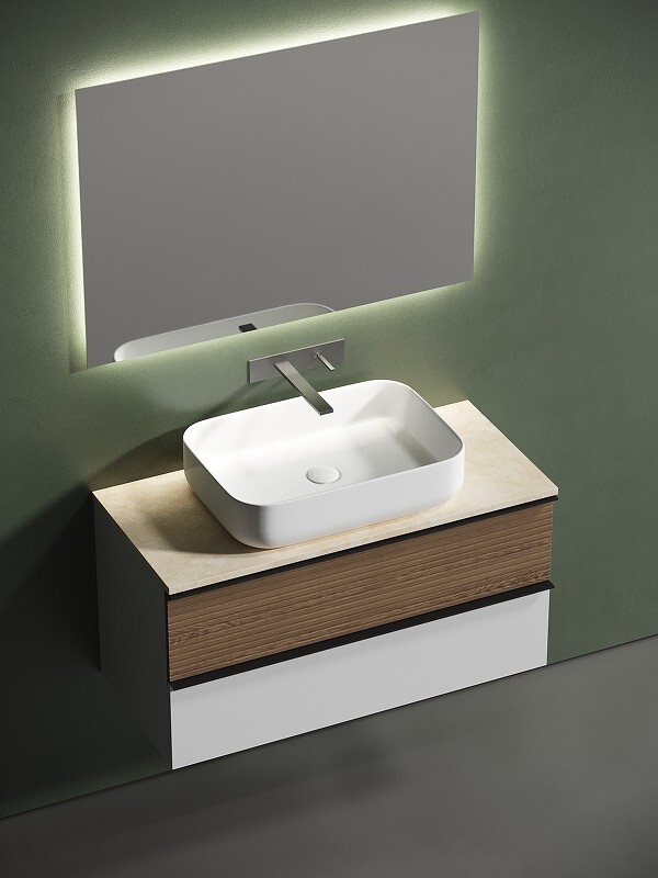Тумба с раковиной Sancos Delta DL100W 100 дуб светлый белая, с отверстием под смеситель K-334101