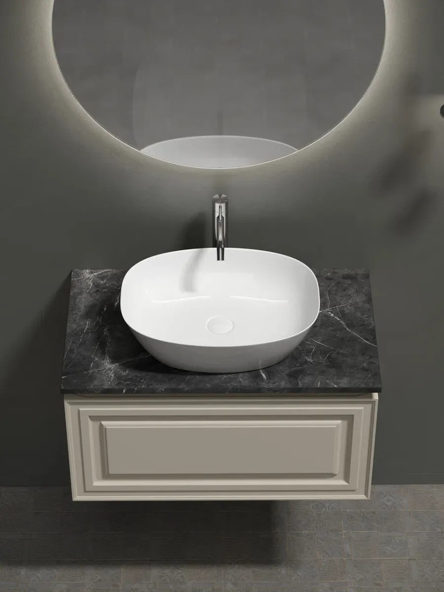 Тумба с раковиной SANCOS Very 80 VR80CE Beige Soft серая столешница с отверстием под смеситель